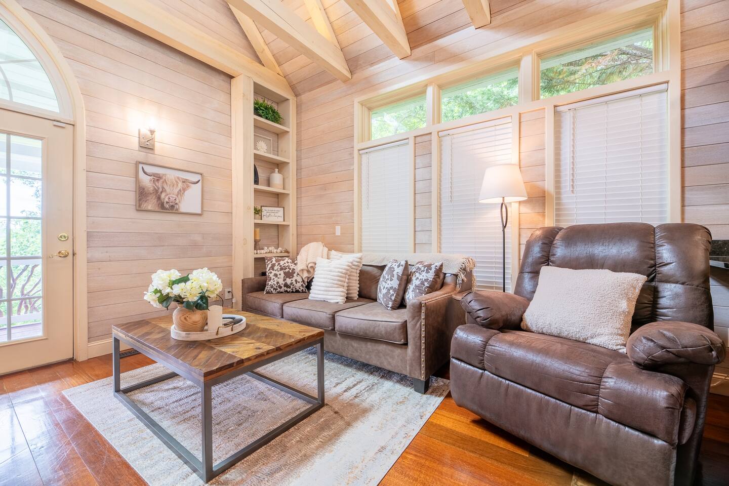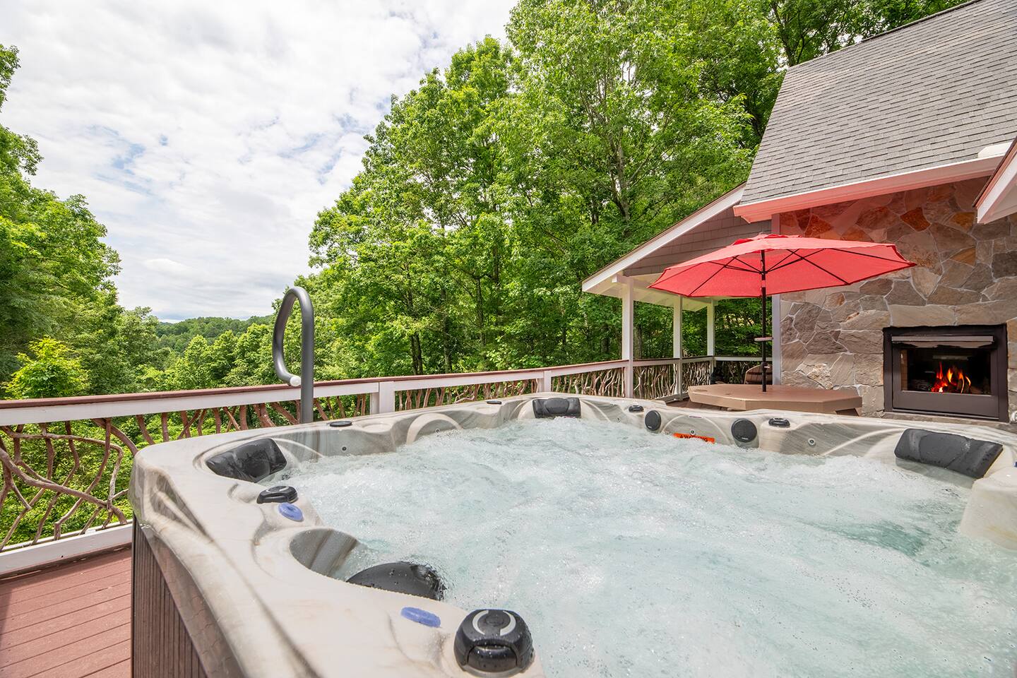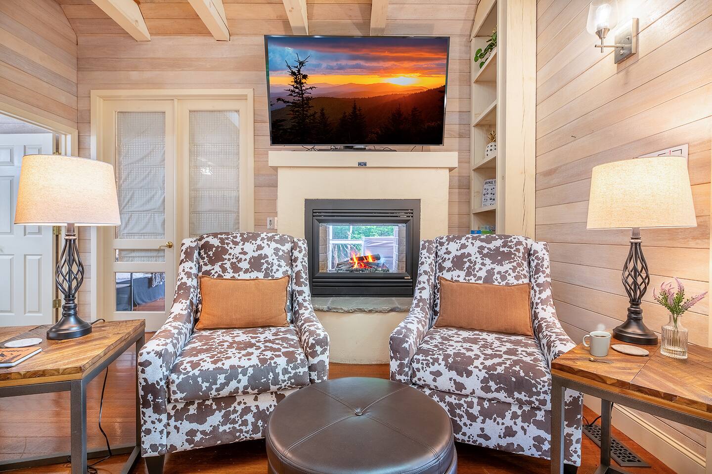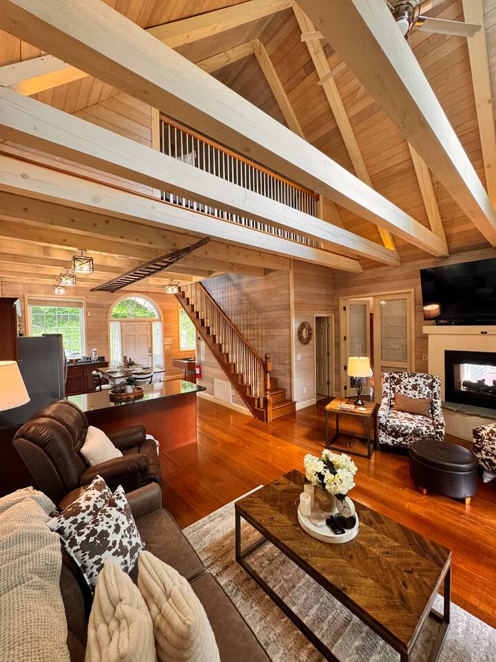 Escape to Mountain View Hideaway, a peaceful Smoky Mountain cabin about 20 minutes from Pigeon Forge and 25 minutes from Gatlinburg. Relax in the private hot tub with mountain views or enjoy the see-through indoor/outdoor fireplace. The cabin includes a fire pit with firewood provided, retro arcade games, fully stocked kitchen, coffee & tea bar, and Level 2 EV charger. Dog-friendly: up to two dogs (75 lbs or less).