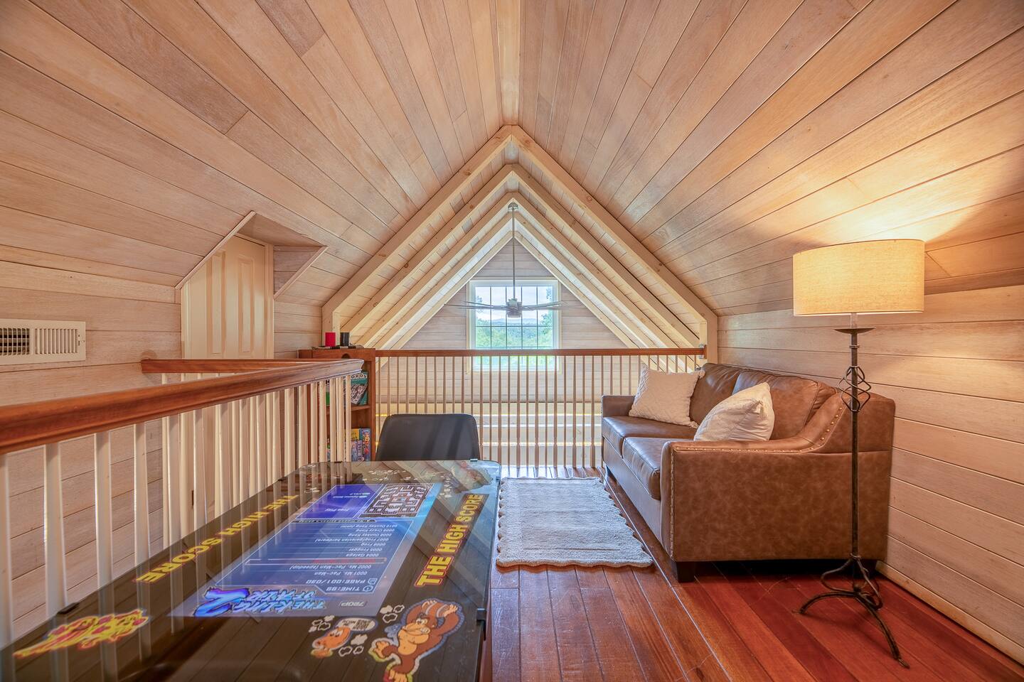 Mountain View Hideaway is a cozy Smoky Mountain retreat designed for comfort, relaxation, and enjoying the scenery. Bedroom • Comfortable king-size bed • Smart TV • Direct access to the bathroom Loft • Cozy loft space with a trundle bed featuring two full-size mattresses • Perfect for kids or additional guests • Retro arcade-style game console with a variety of classic games • Board games for relaxing evenings Living Area • Comfortable seating area • Smart TV • Unique see-through indoor/outdoor fireplace Kitchen & Coffee Bar • Fully stocked kitchen with cookware, utensils, and essentials • Dining space for shared meals • Fully stocked coffee and tea bar so you can enjoy a relaxing morning in the mountains Outdoor Space • Private hot tub with mountain views • Outdoor seating area • Fire pit with firewood provided • Charcoal grill Additional Amenities • Smart TVs • High-speed WiFi • Washer and dryer • Laundry detergent and dryer sheets provided for guest use • Level 2 EV charger available on-site • Dog-friendly property The cabin offers the perfect mix of modern comfort and peaceful mountain privacy, while still being a short drive to the area’s most popular attractions.